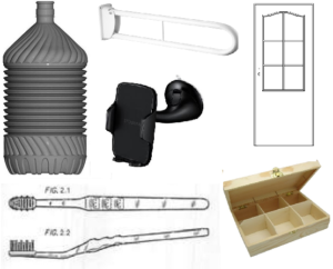 Industriedesigns können beispielsweise Möbel, Griffe, Zahnbürsten, Verpackungen, Flaschen, Bonbonformen und andere sein.